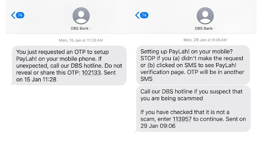 Moreover, two-part text messages were sent to users when they set up PayLah – a capitalised “STOP” followed by a warning to users about scams after a while, allowing users to review their request (shown below). When I was 16 and applied for my first Debit Card, there were no such SMS warnings or much publicity about scams. All I recalled was the prominent “Don’t Panic, Don’t Believe, Don’t Give” tagline used in 2016 to advocate for scams. Today, we are endowed with an array of such reminders, even within our banking apps. Banks continue to work hard to prevent potential victims from becoming real ones.